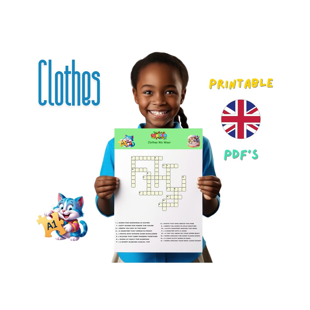 Clothes Crossword Puzzle A1 Level Language Learning printable Digital