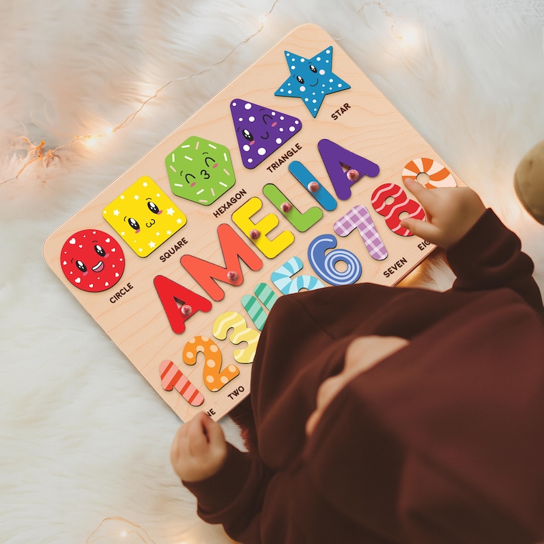 Custom Wooden Puzzle With Name Numbers Personalized Montessori Toy