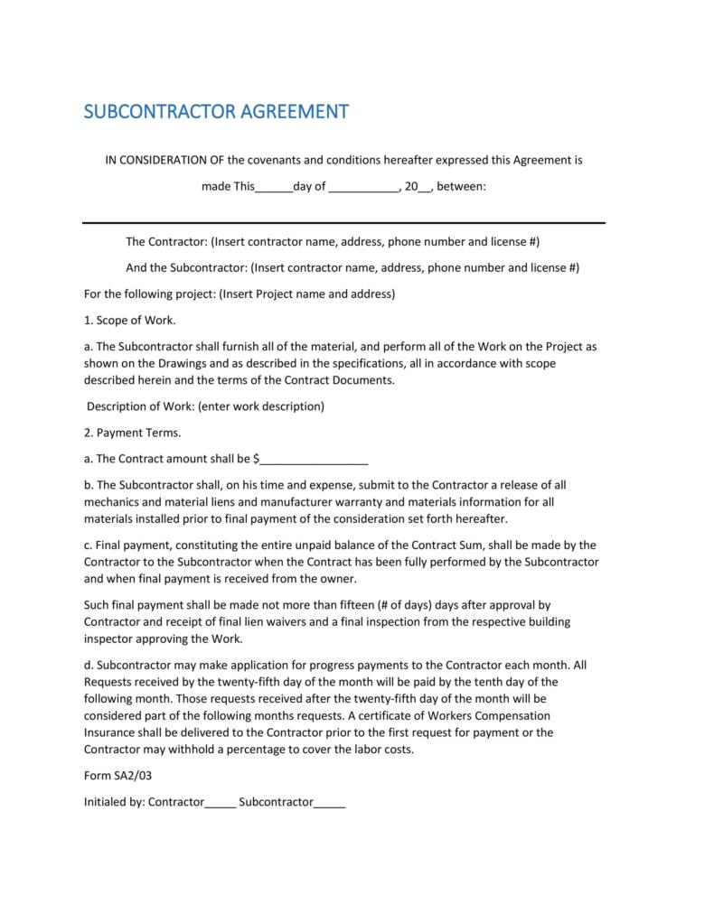 20 FREE Subcontractor Agreement Templates Samples Word PDF