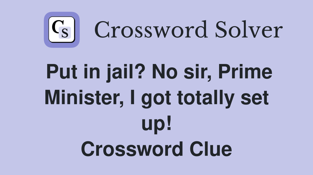 Put in jail? No sir Prime Minister I got totally set up Crossword
