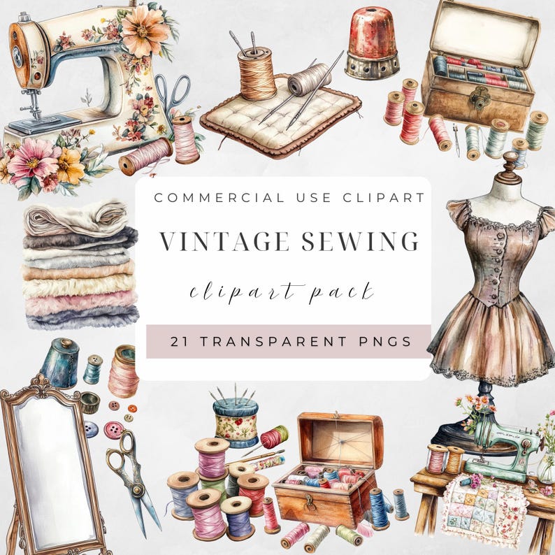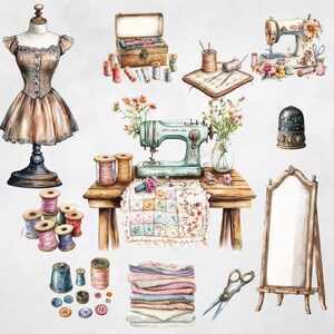 Vintage Watercolour Sewing Clipart Pack Digital Art Clipart Birthday