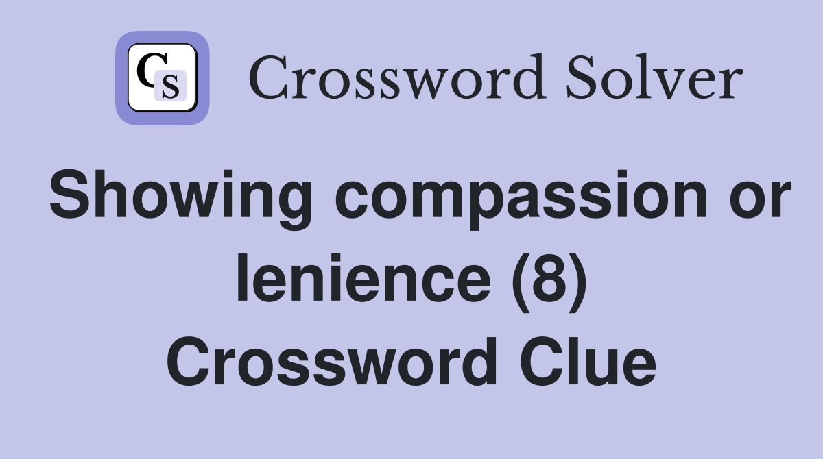 Showing compassion or lenience (8) Crossword Clue Answers Crossword