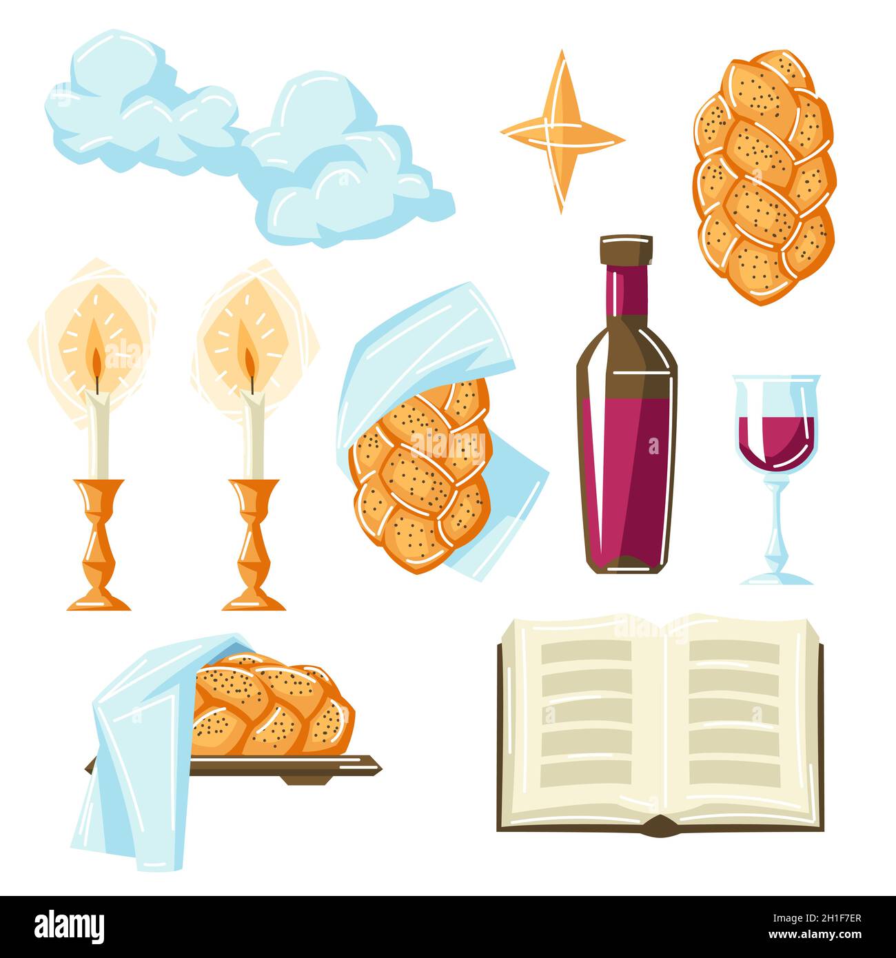 Shabbat Shalom greeting card jewish symbols set Judaism concept