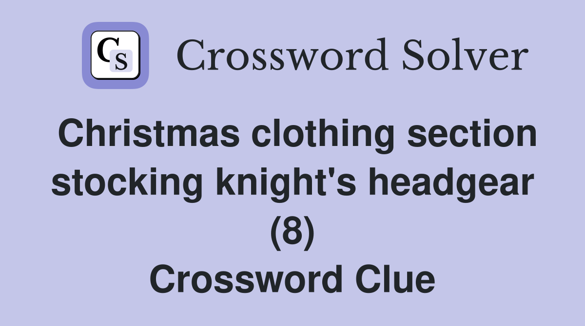 Christmas clothing section stocking knight #39 s headgear (8) Crossword