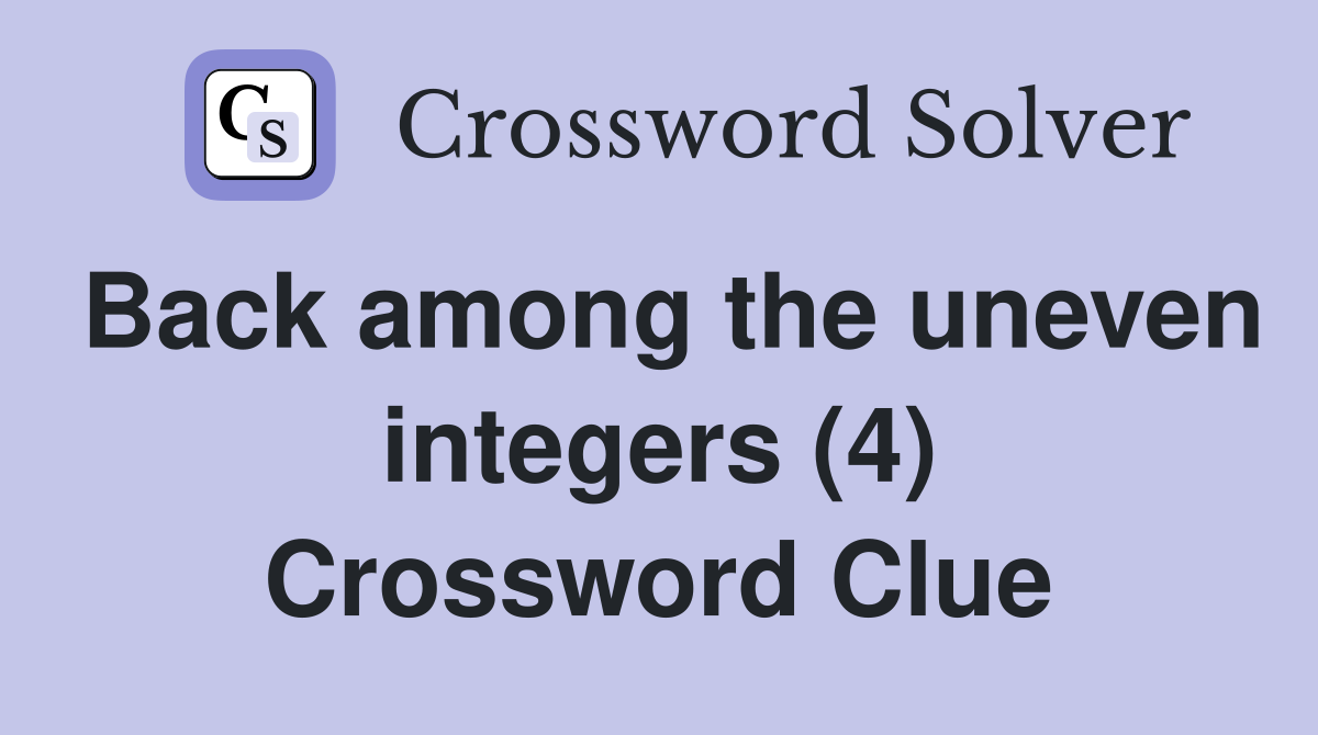 Back among the uneven integers (4) Crossword Clue Answers Crossword