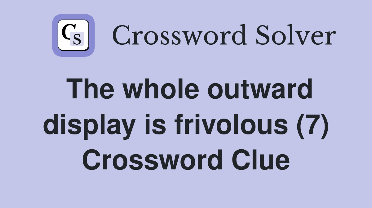 The whole outward display is frivolous (7) Crossword Clue Answers