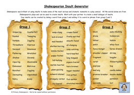 Shakespearean Insult Generator Teaching Resources