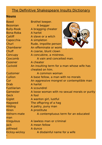 Starter activity: Fun with Shakespearean insults Teachit