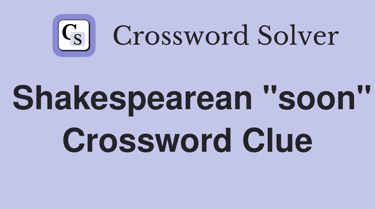 Shakespearean quot soon quot Crossword Clue Answers Crossword Solver