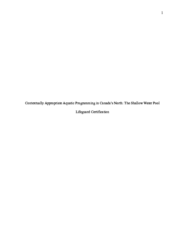 (PDF) Contextually appropriate aquatic programming in Canada #39 s North