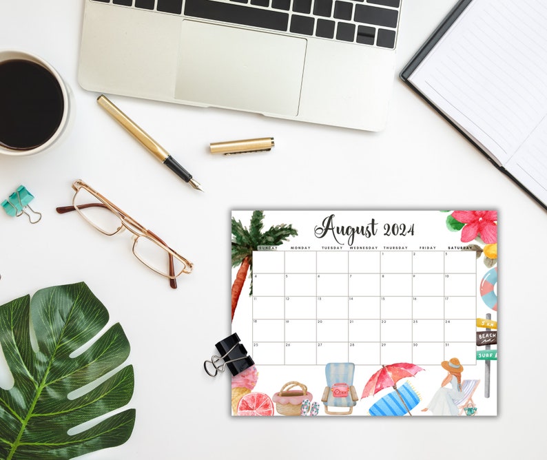 EDITABLE August 2024 Calendar Printable Wall Calendar 2024 Cute