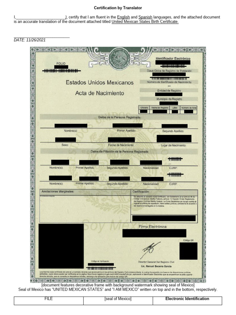 Mexican Birth Certificate Template PDF Birth Certificate
