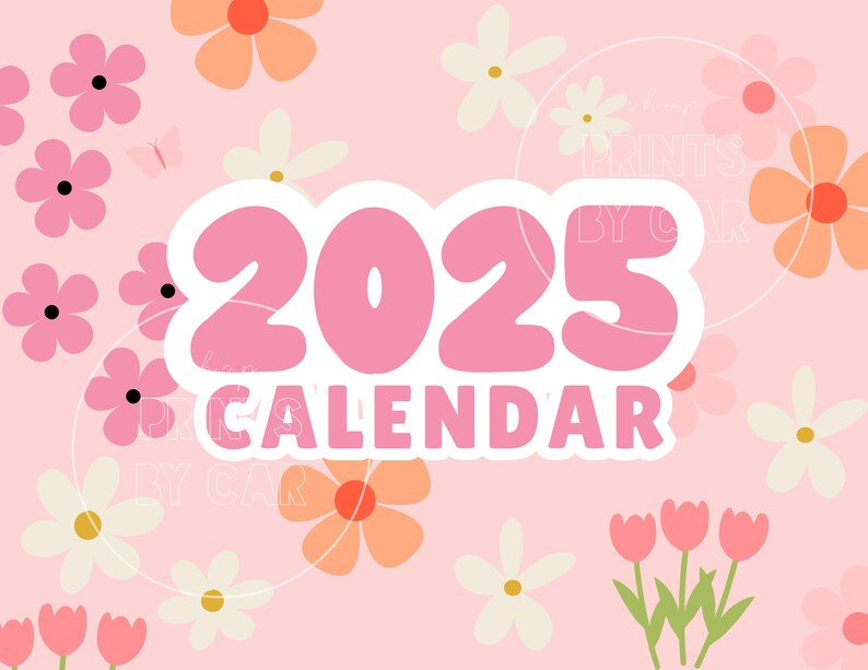 2025 Monthly Calendar Digital Download Floral Girly Pink Calendar