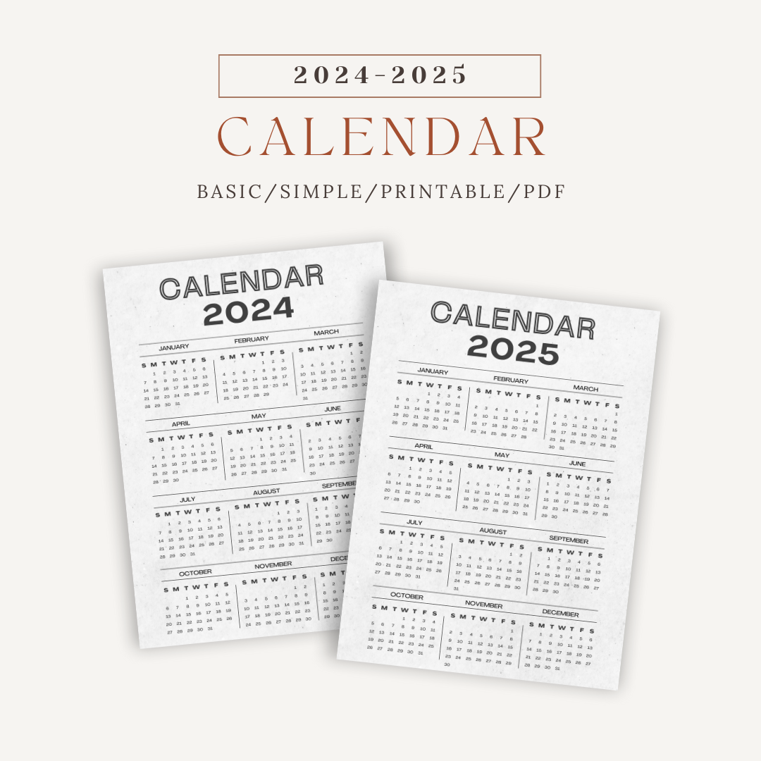 Free 2024 2025 Simple Calendar Template PDF/printable/ipad calendar