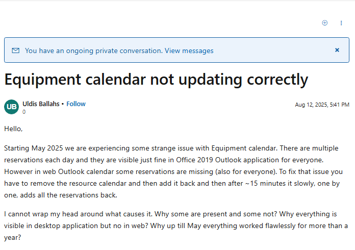 Equipment calendar not updating correctly Microsoft Q A