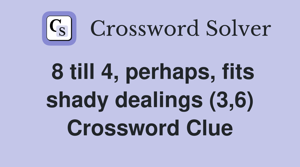 8 till 4 perhaps fits shady dealings (3 6) Crossword Clue Answers