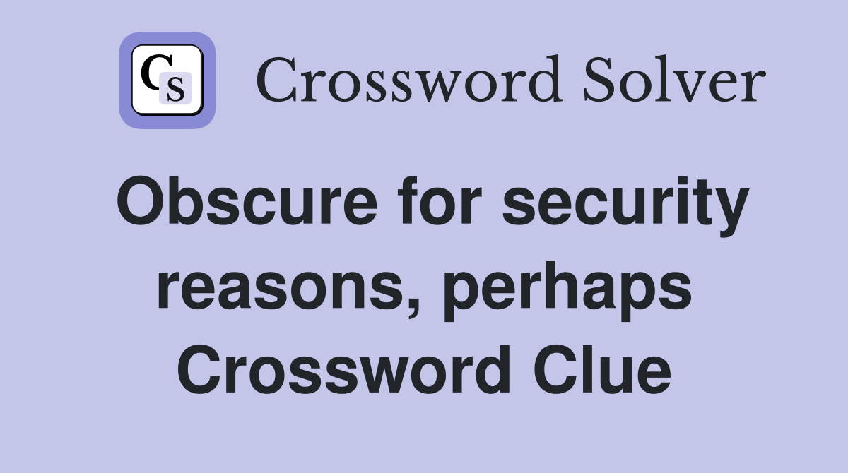 Obscure for security reasons perhaps Crossword Clue Answers