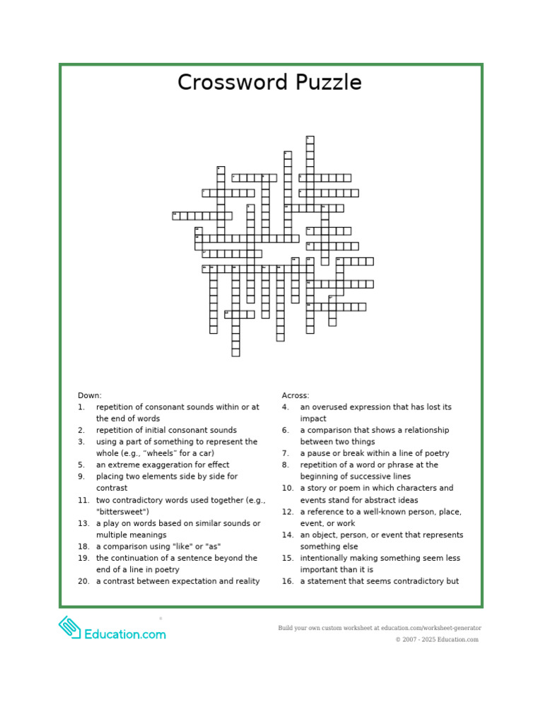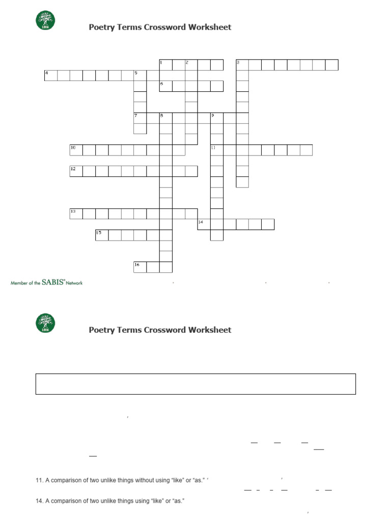 Crossword Puzzle PDF Poetry Word