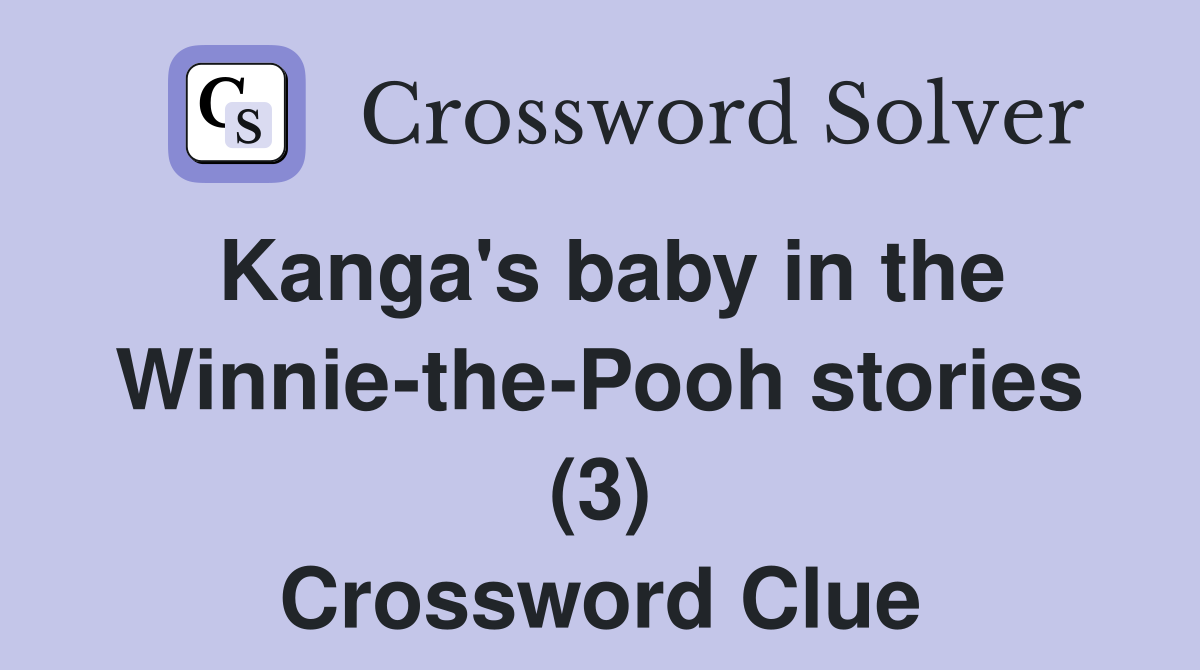 Kanga #39 s baby in the Winnie the Pooh stories (3) Crossword Clue
