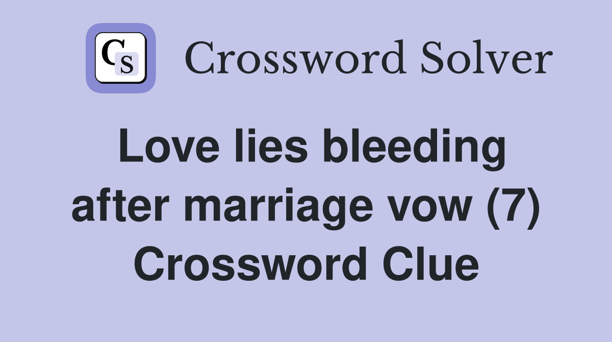 Love lies bleeding after marriage vow (7) Crossword Clue Answers
