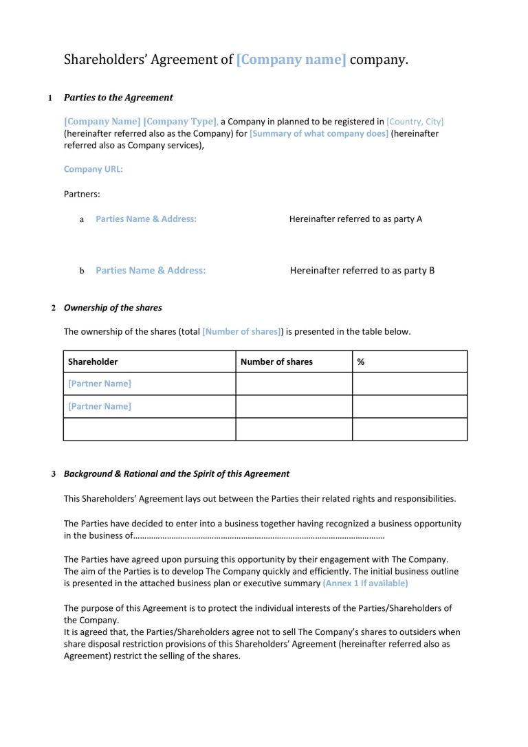 Shareholders Agreement Template