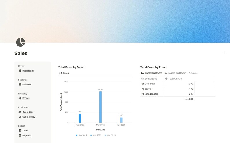Notion Hotel Booking System Template for Airbnb Homestay and Rentals