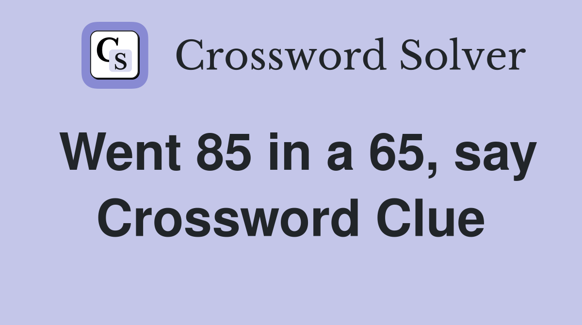 Went 85 in a 65 say Crossword Clue Answers Crossword Solver