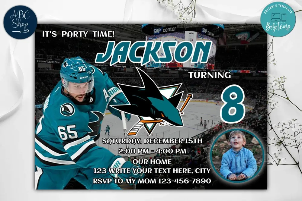 San Jose Sharks Birthday Invitation Instant Download Bobotemp