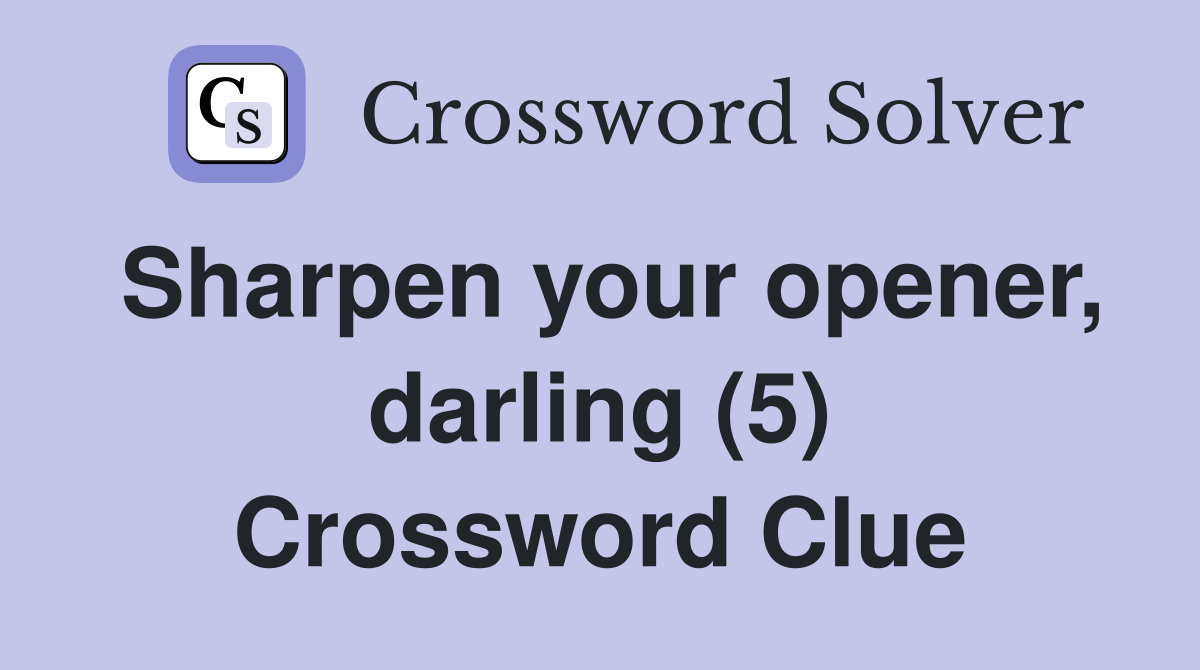 Sharpen your opener darling (5) Crossword Clue Answers Crossword