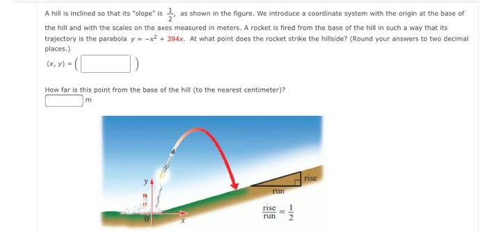 Solved: (1 point) A hill is inclined so that its slope is 1/2 as