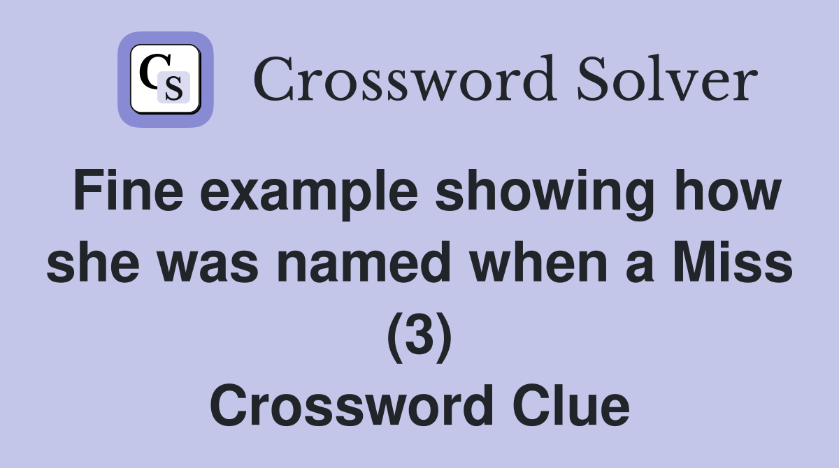 Fine example showing how she was named when a Miss (3) Crossword Clue