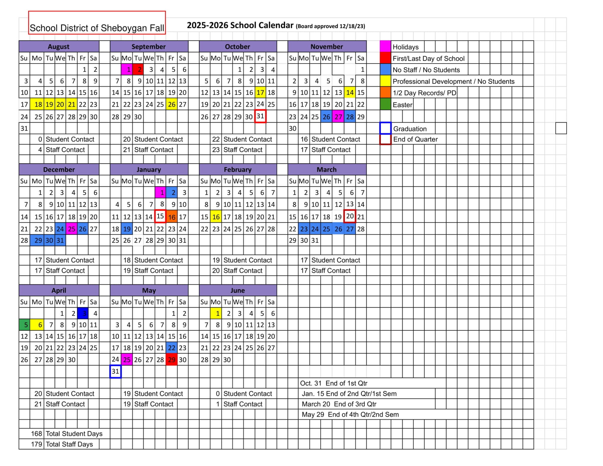 SHEBOYGAN AREA SCHOOL wi Calendar 25 26 Revised EduCounty