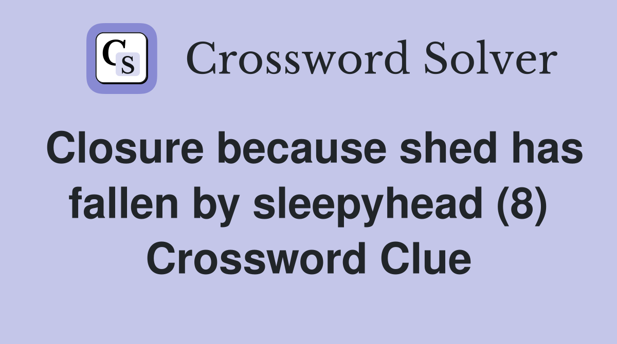 Closure because shed has fallen by sleepyhead (8) Crossword Clue