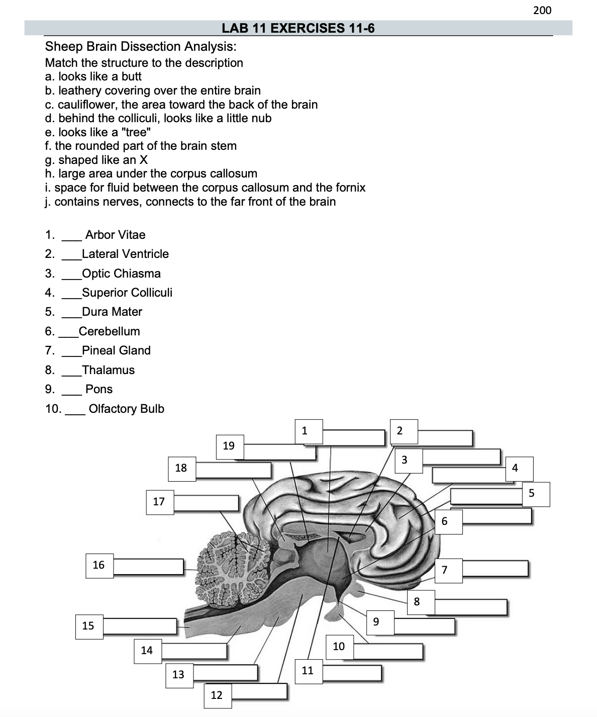 LAB 11 EXERCISES 11 6 200 Sheep Brain Dissection