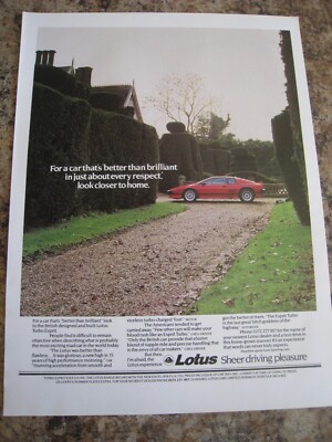 LOTUS TURBO ESPRIT SHEER DRIVING PLEASURE 1984 ADVERT A4 SIZE FILE 1