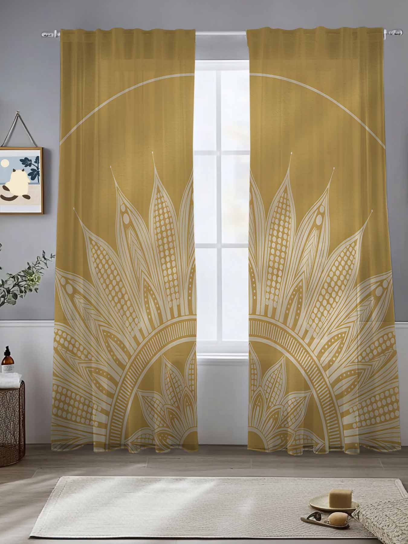 Abstract Flower Sheer Curtains 84 Inches Long 2 Panels Orange Sunflower