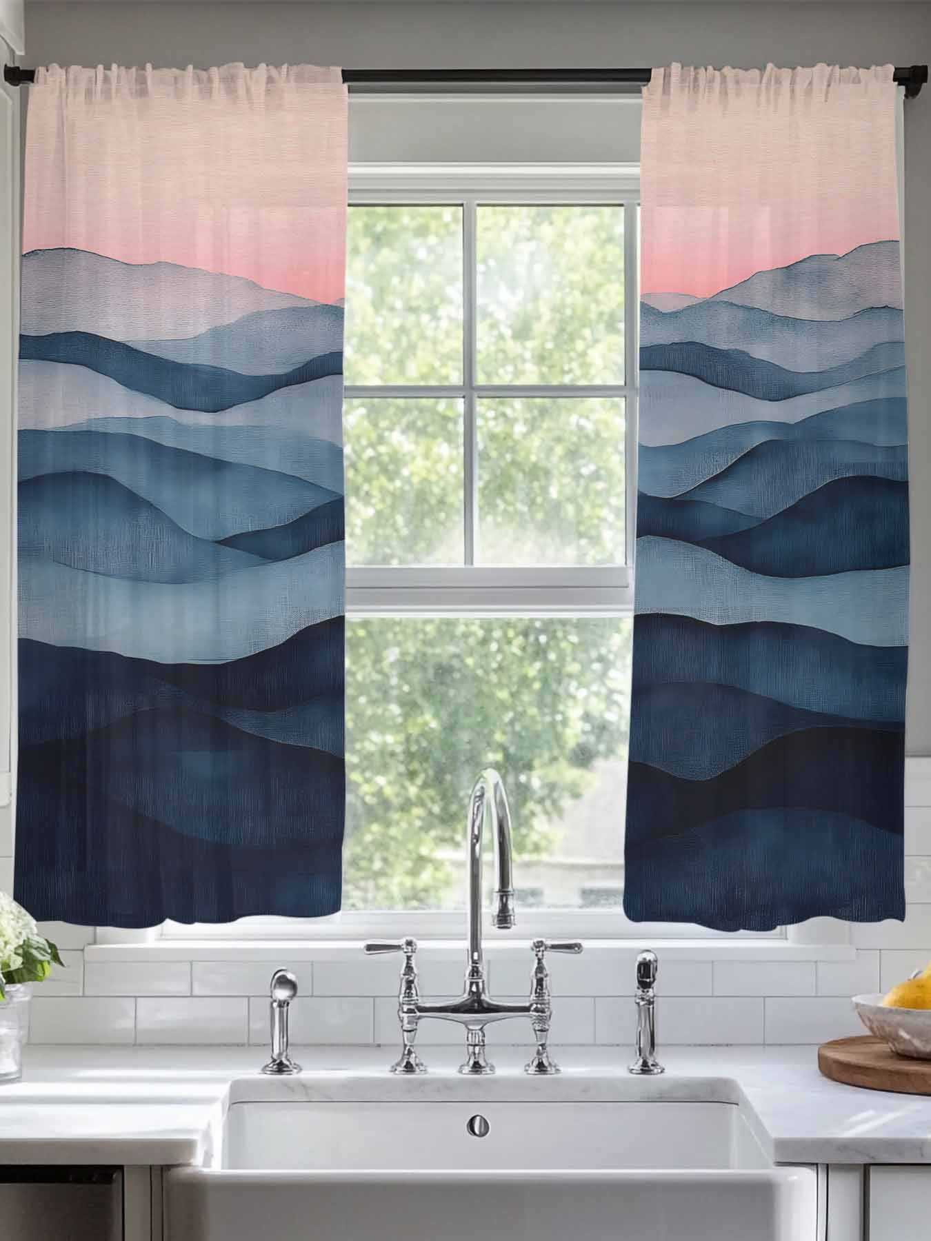Abstract Mountain Sheer Curtains 63 Inches Long 2 Panels Sunset