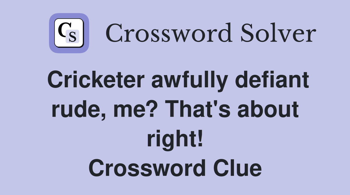 Cricketer awfully defiant rude me? That #39 s about right Crossword