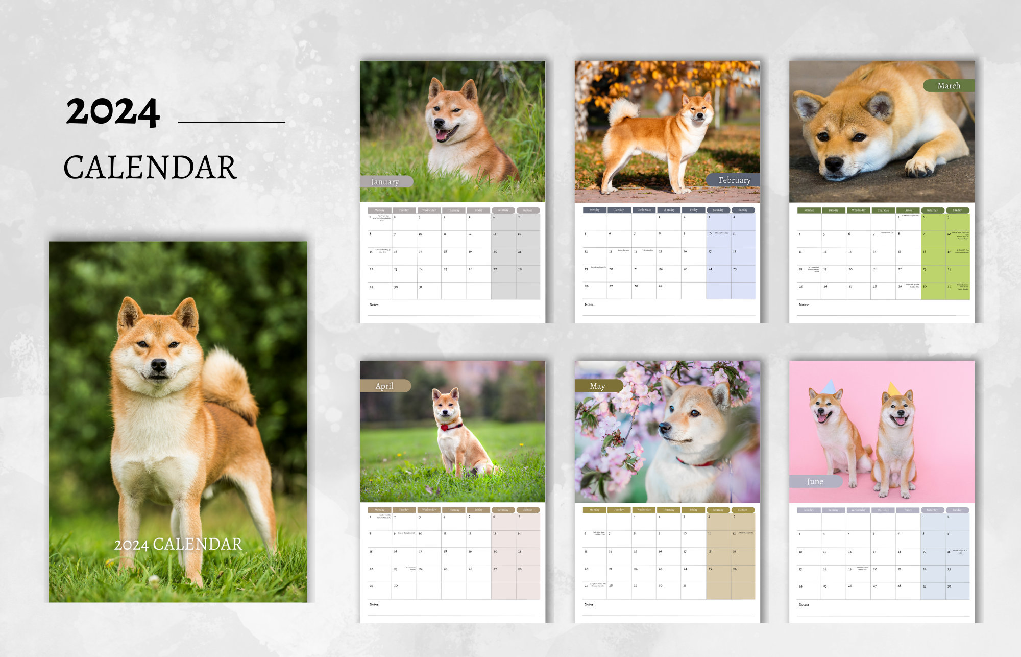 Shiba Inu 2024 Calendar: 12 Month Animals Calendar 2024 From January to