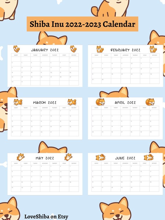 Shiba Inu Printable Calendar 2022/2023 Cute Calendar PDF Etsy