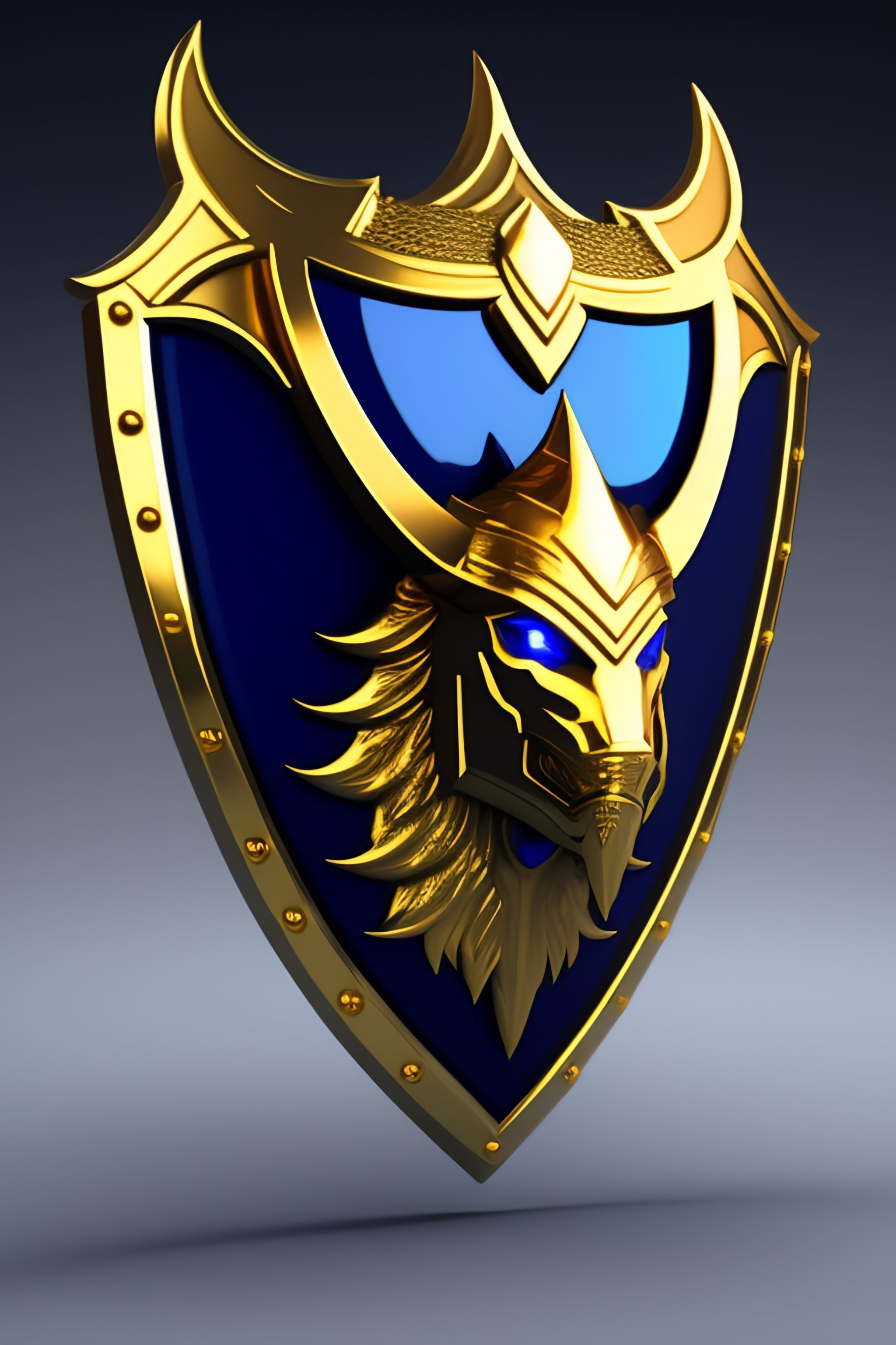 Lexica A gothic golden shield logo high fantasy in gold and blue