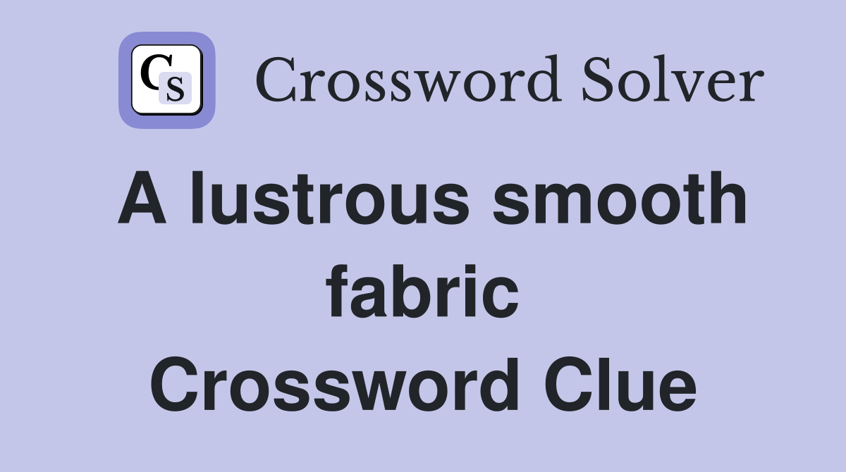 A lustrous smooth fabric Crossword Clue Answers Crossword Solver