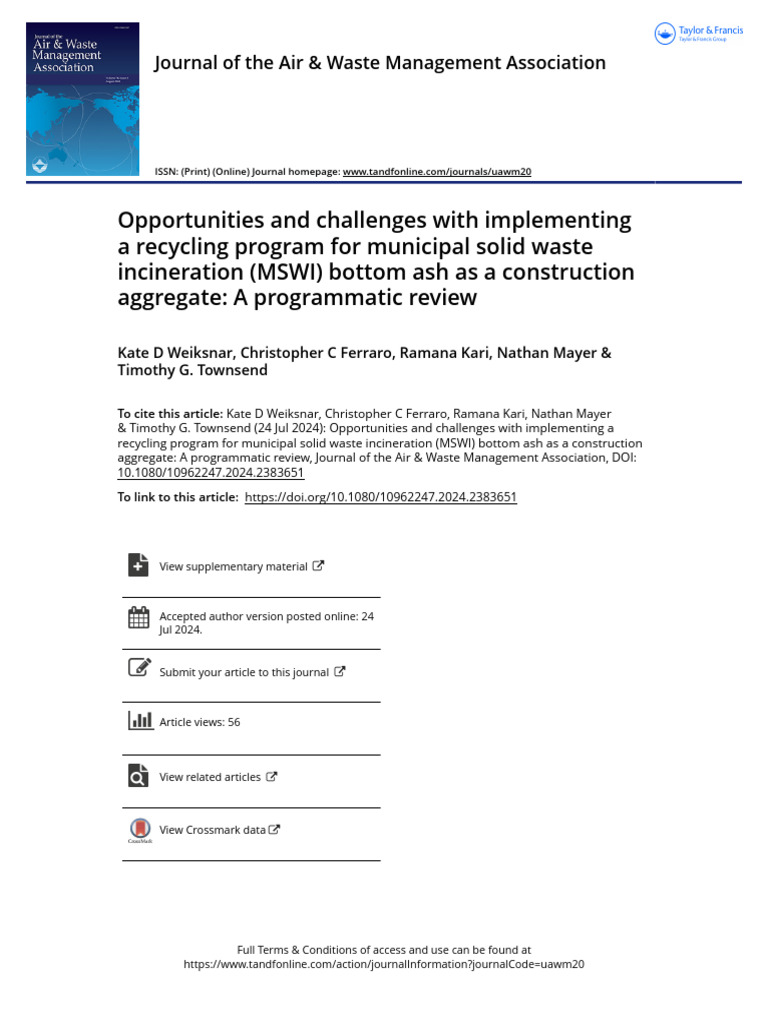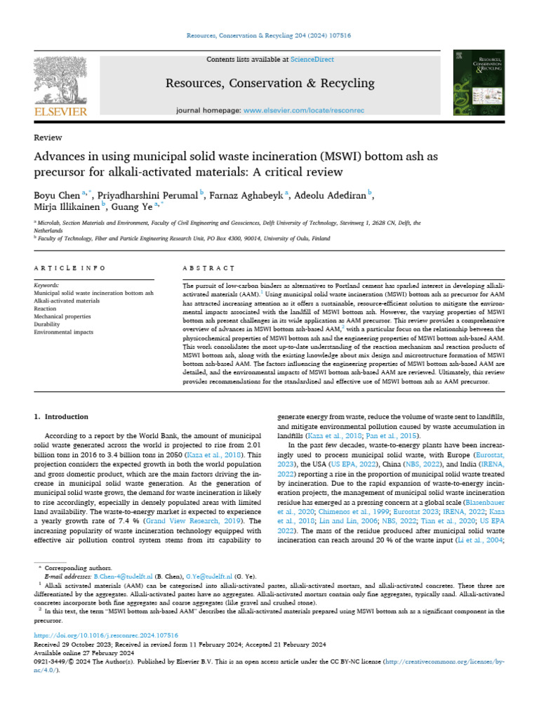 Advances in Using Municipal Solid Waste Incineration (MSWI) Bottom Ash