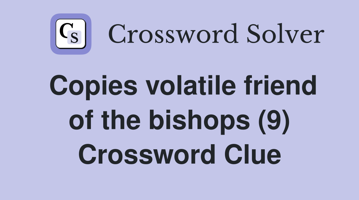 Copies volatile friend of the bishops (9) Crossword Clue Answers