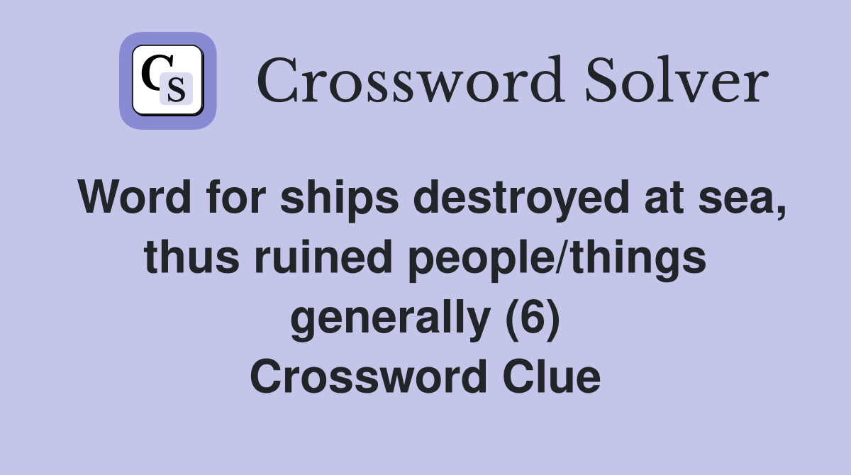 Word for ships destroyed at sea thus ruined people/things generally (6