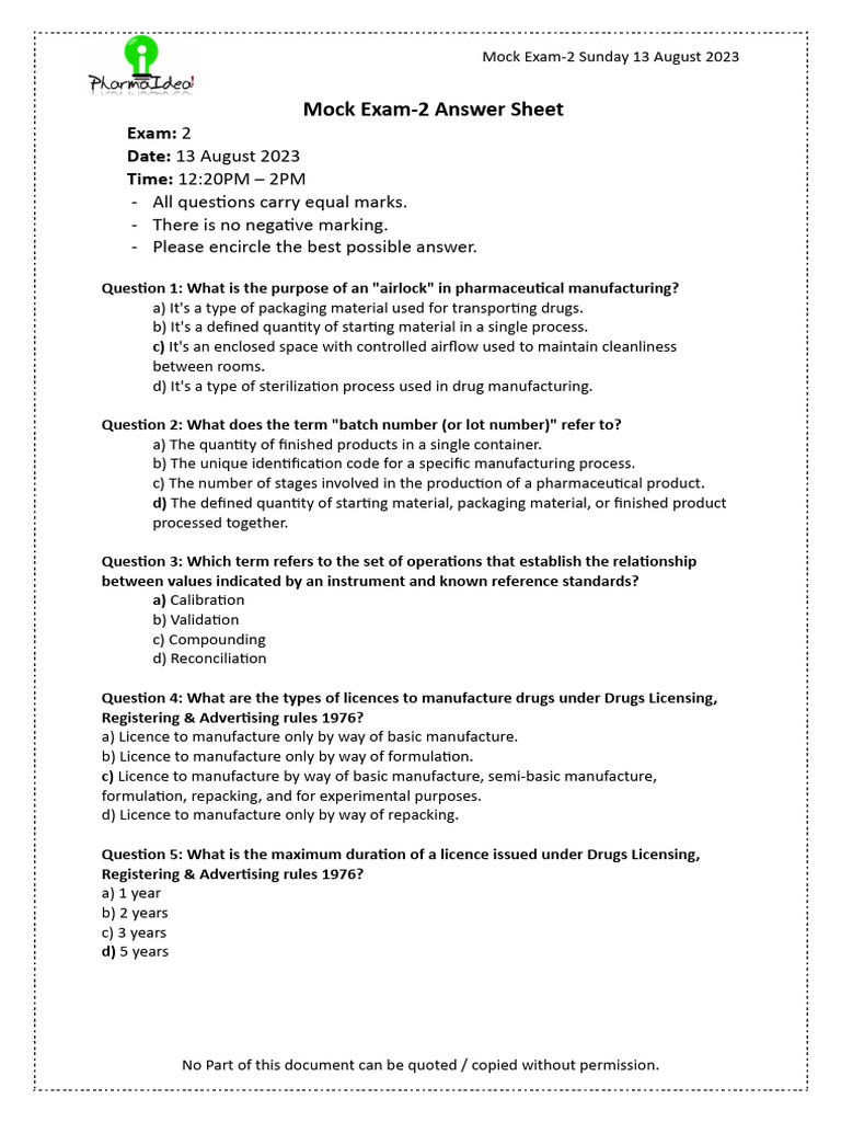 Mock Exam 2 Answers Sheet PDF Clinical Trial Prescription Drugs