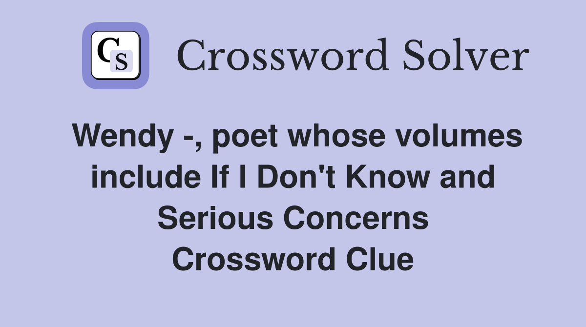 Wendy poet whose volumes include If I Don #39 t Know and Serious