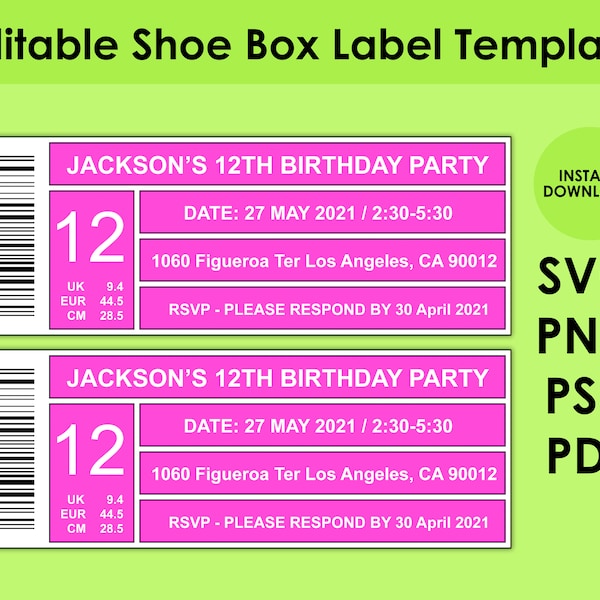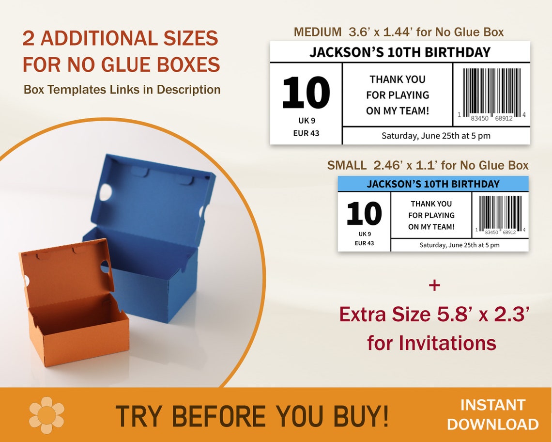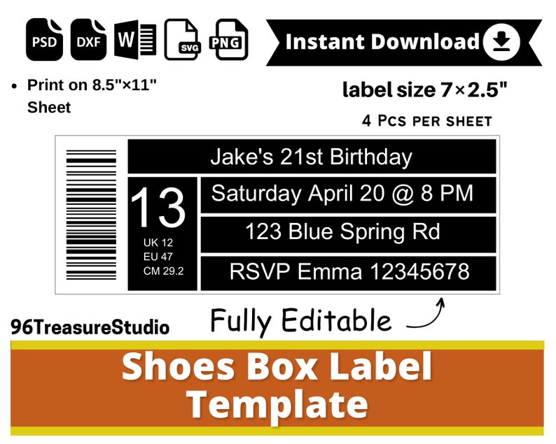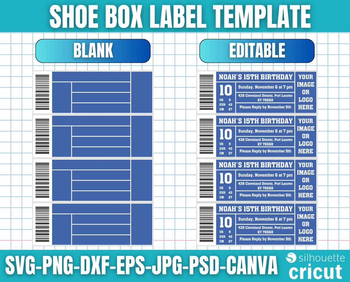 Editable Shoe Box Label Template Psd Png Svg Pdf Dxf Etsy New Zealand
