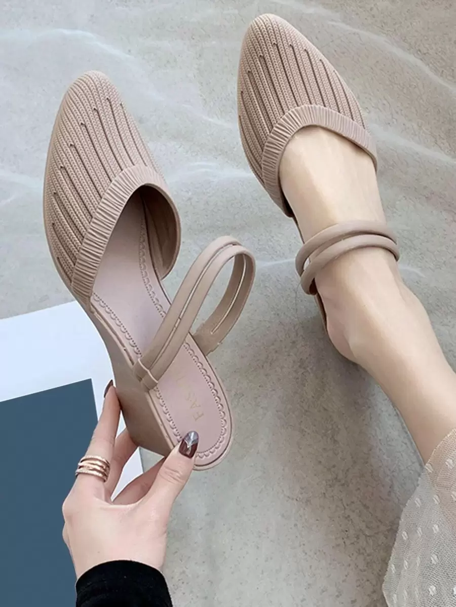 Elegant Shoes For Women Texture Embossed Point Toe Two Way Wear Court