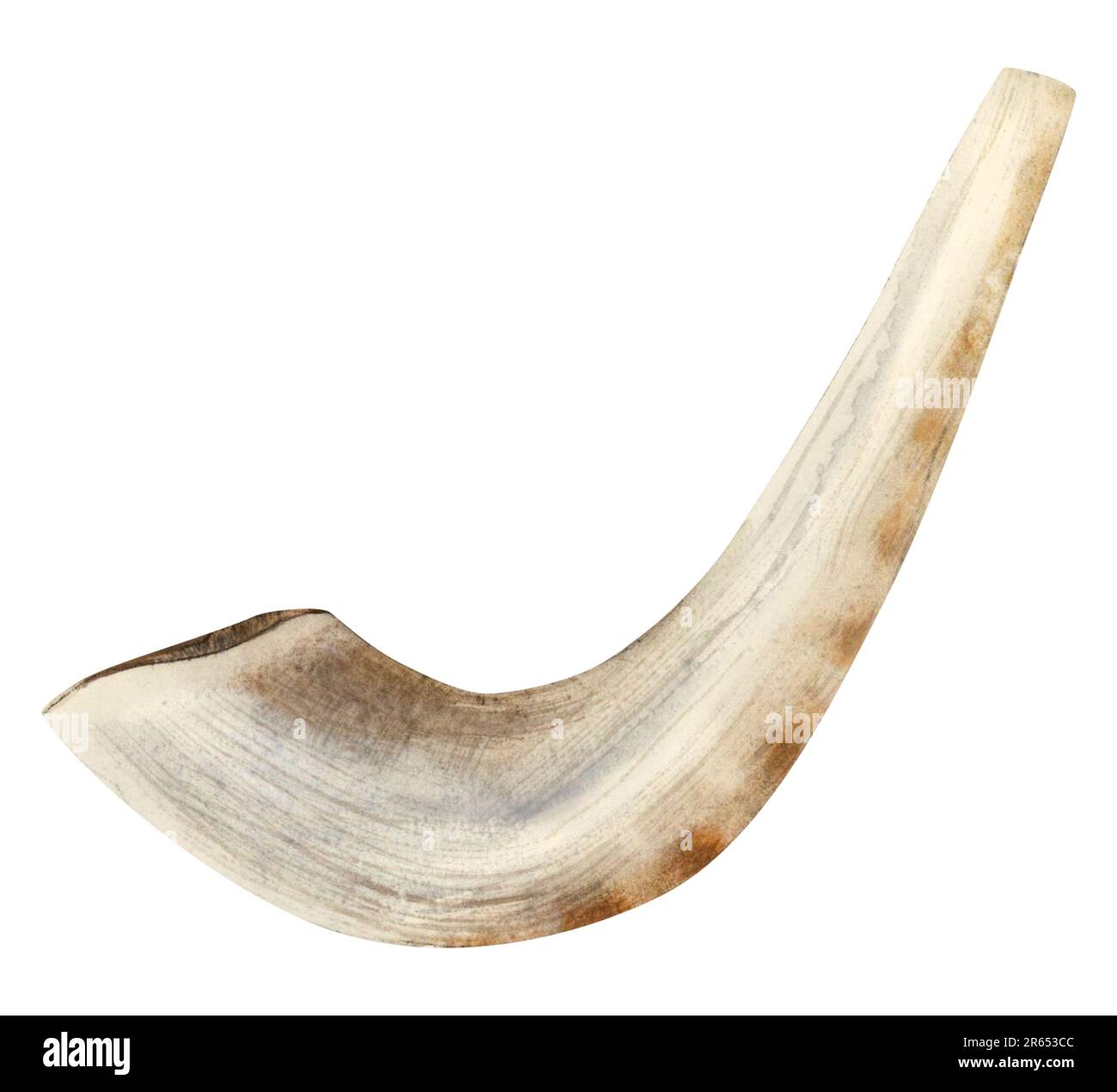 Small shofar from ram horn for Rosh Hashanah and Yom Kippur watercolor